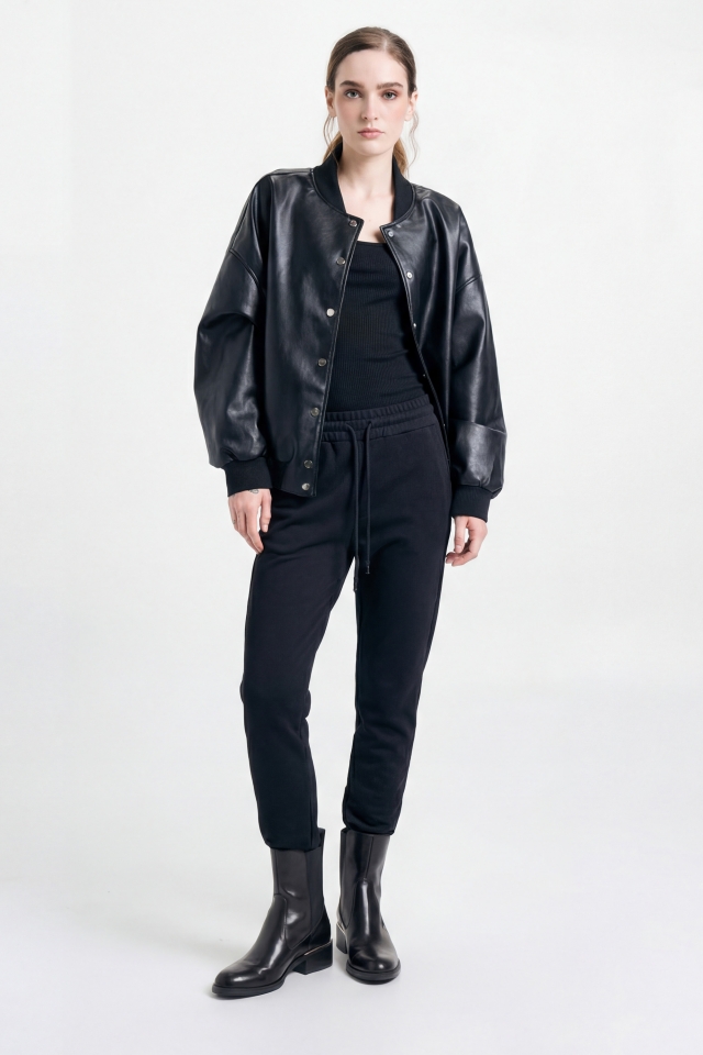 Babucha con terminación de puño, posee cintura con elástico y pasadores estampados full print. Detalle de badana de cuero con marca grabada en terminación de bolsillo.