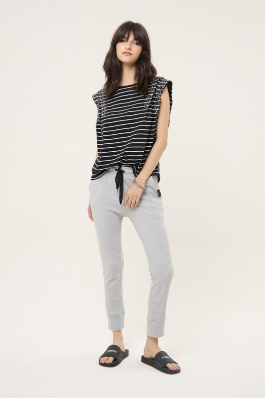 Babucha de waffle con puño y badana de ecocuero en delantero, ojalillo personalizado y cordón en cintura.