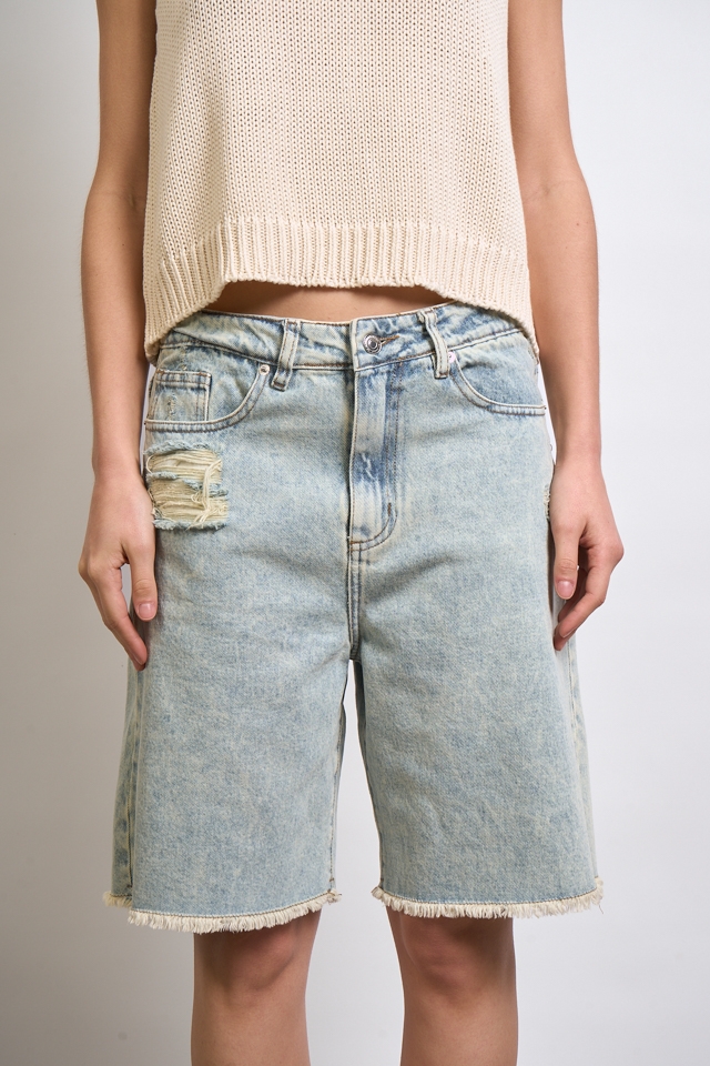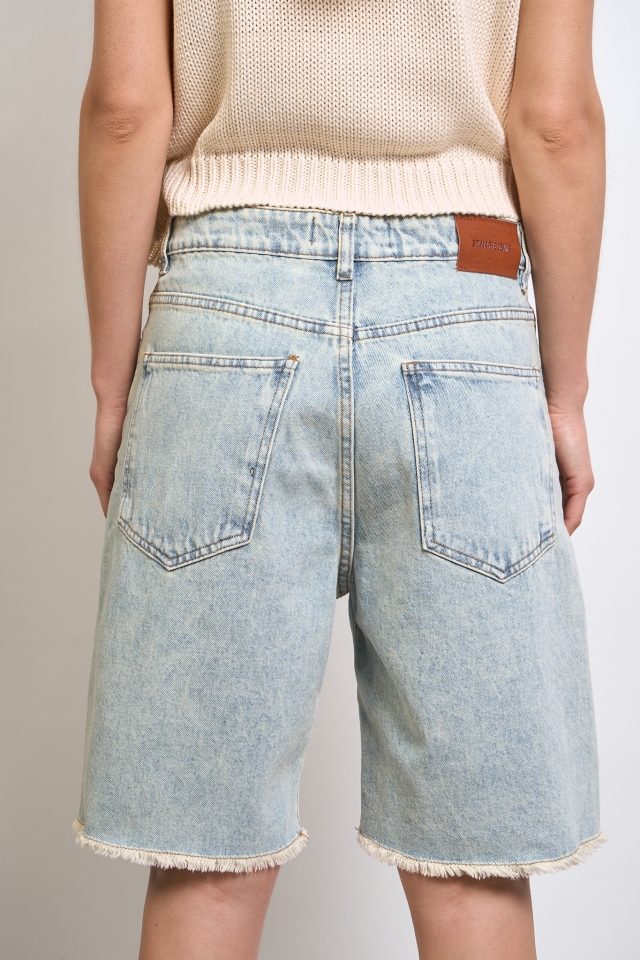 Bermuda de tiro medio, su calce es relajado, y su ruedo está hecho al corte. A modo de detalle en la cintura trasera lleva una badana con la identificación de marca.