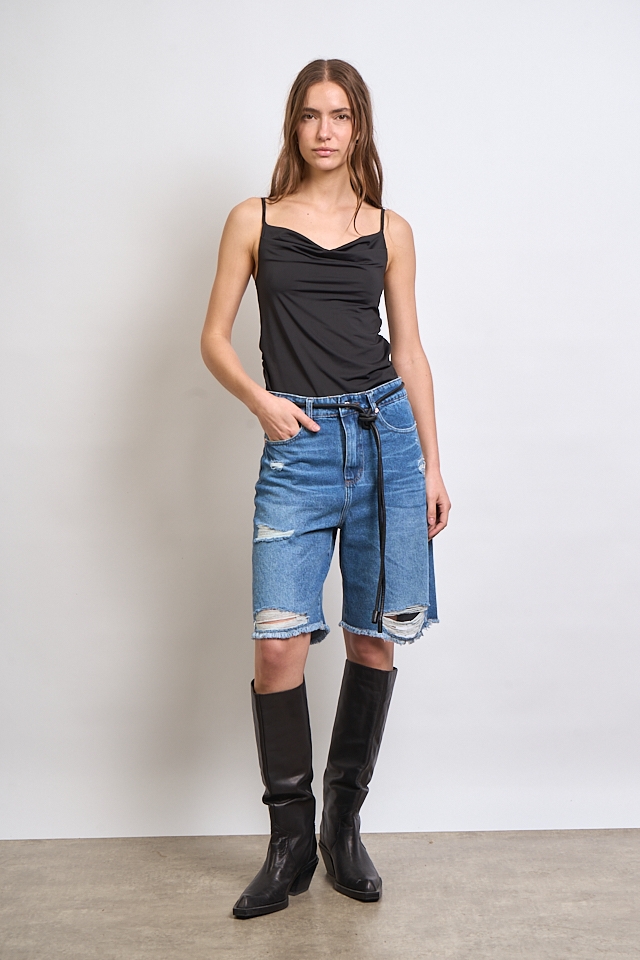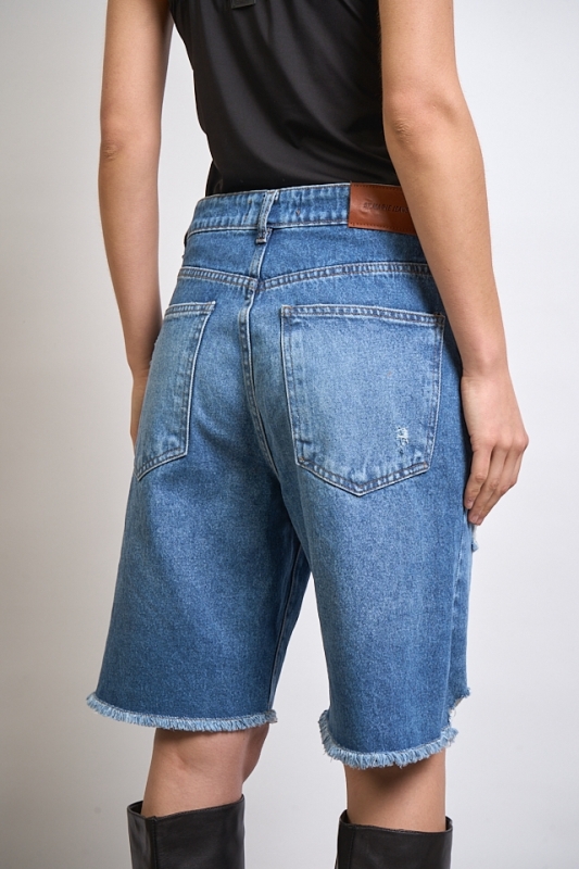 Bermuda de tiro medio, su calce es relajado, y su ruedo está hecho al corte. A modo de detalle en la cintura trasera lleva una badana con la identificación de marca. Composición: 100% Algodon