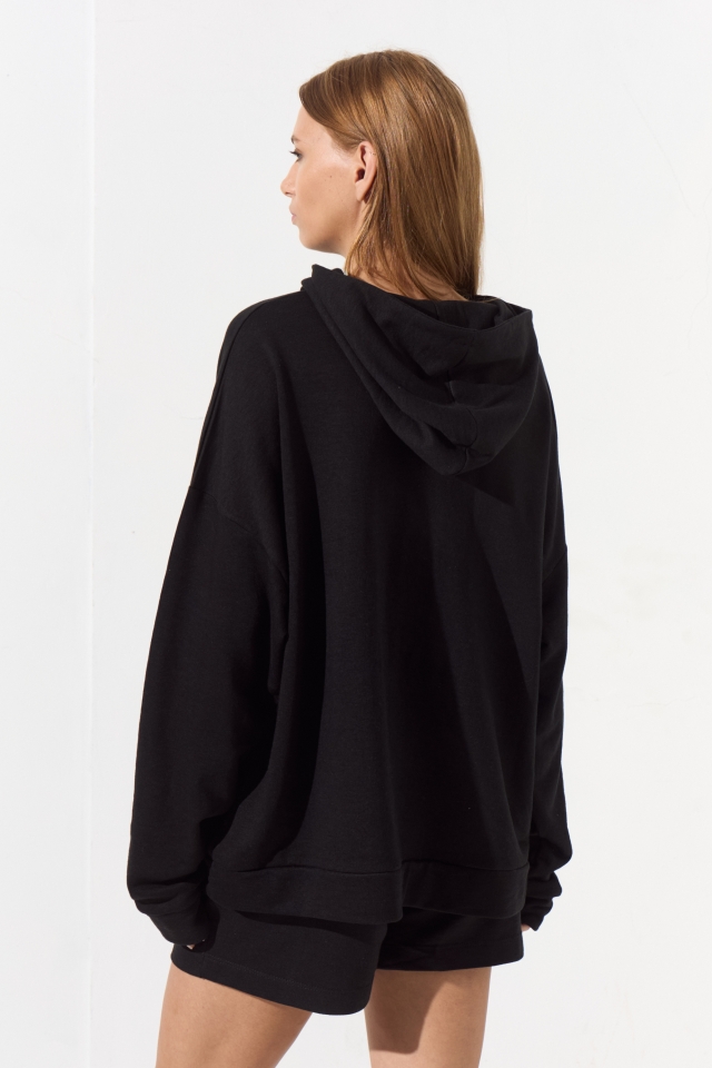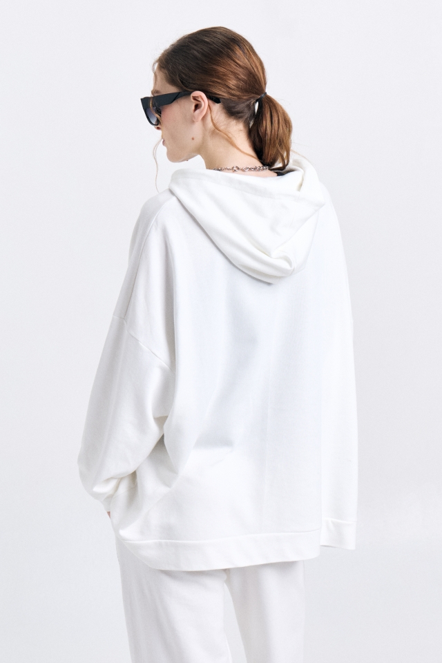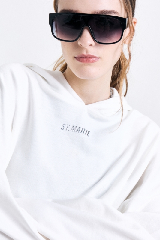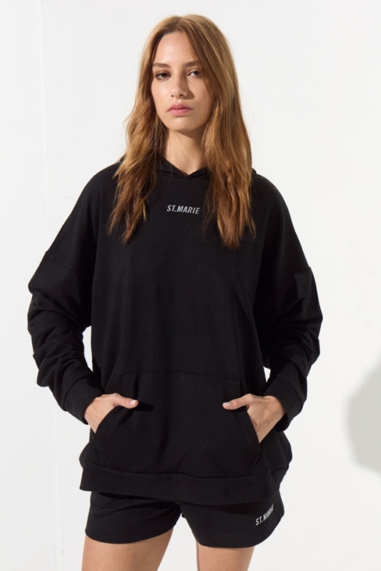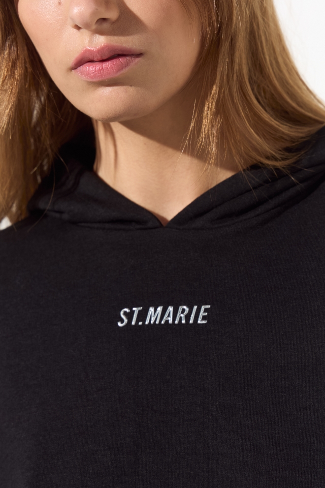 Buzo de rustico con capucha, y bolsillo en delantero. Cuenta con detalle de logo St.Marie grabado en vinilo 3D.