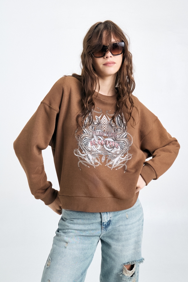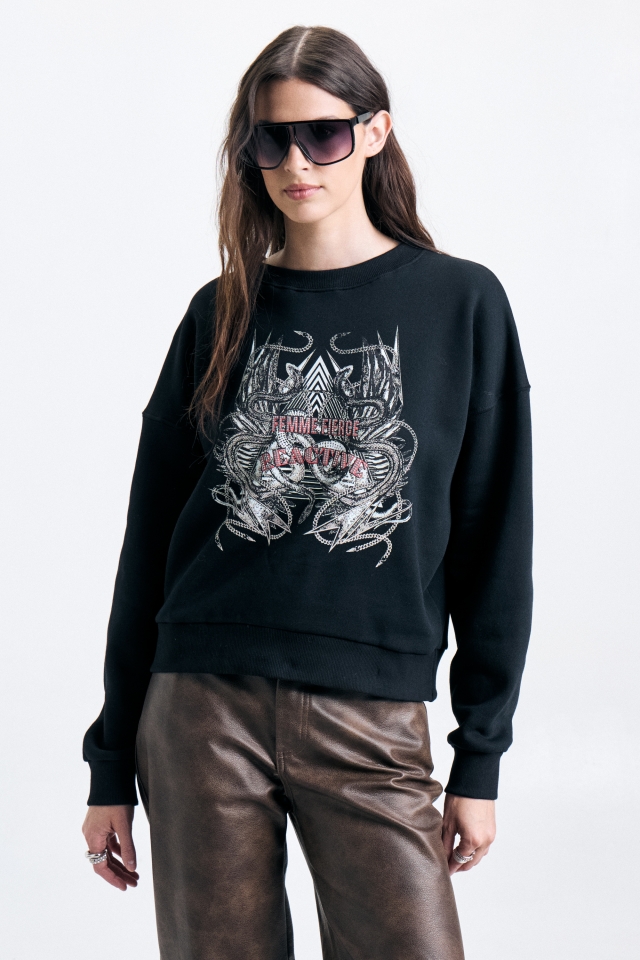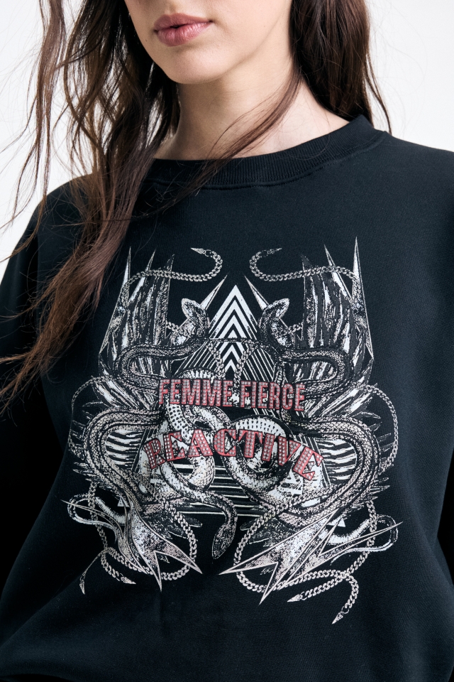 Buzo escote redondo, de corte clásico, confeccionado en frisa de algodón. Lleva estampa central de tigre en llamas. Composición: 90% Algodón 10% Poliéster
