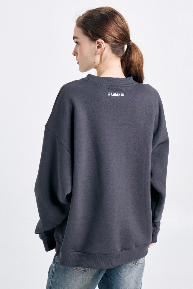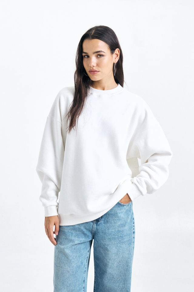 Buzo de frisa, calce oversize. Estampa institucional a tono en espalda.Composición: 90% algodón 10% poliéster