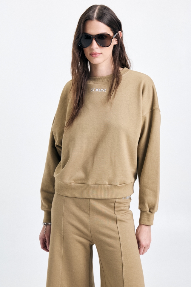 Buzo de corte clásico, confeccionado en rústico, con detalle de logo de marca metalizado en la delanteraComposición: 90% algodón 10% poliéster
