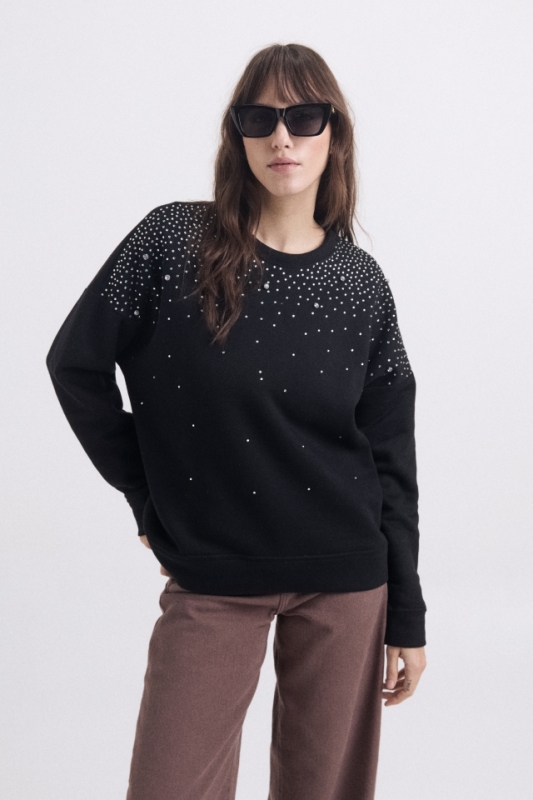 Buzo calce oversize con strass en delantero