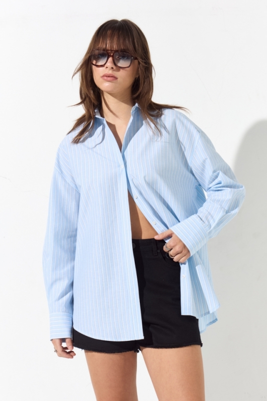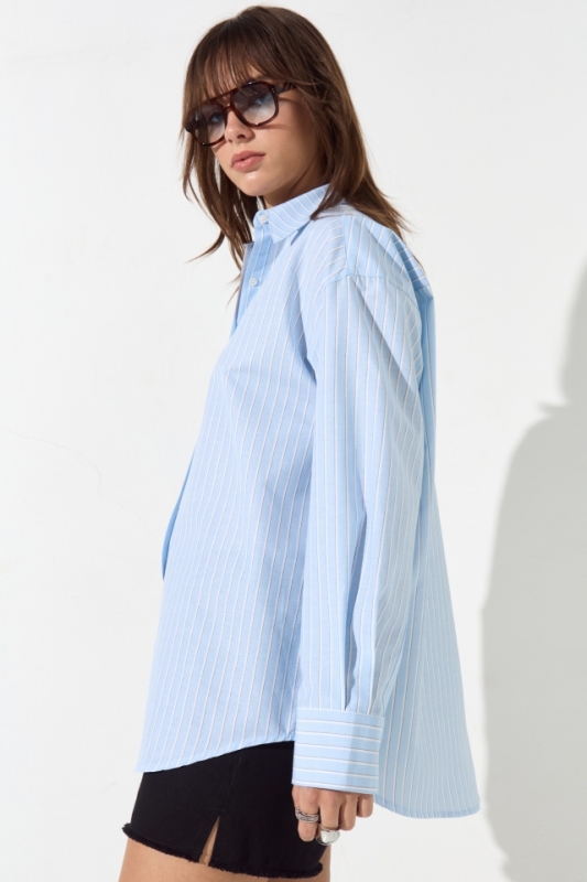Camisa rayada calce oversize con detalle de tabla en espalda