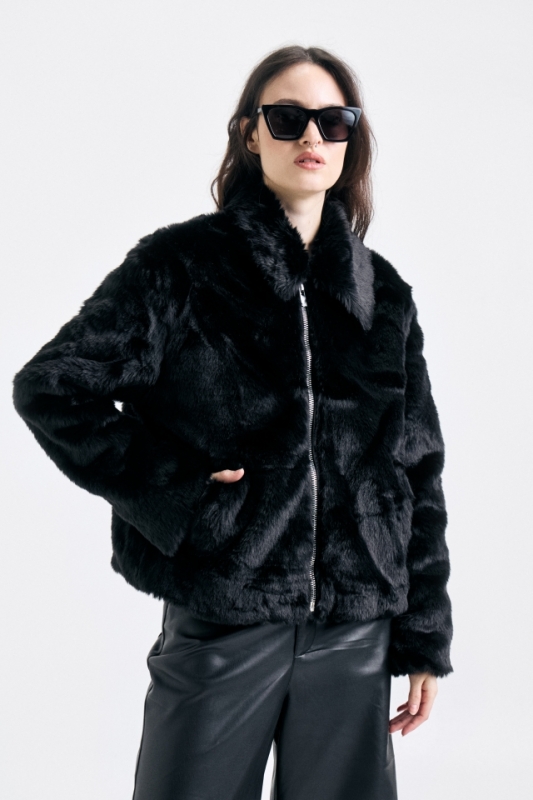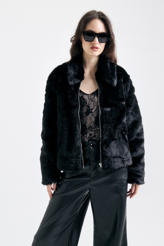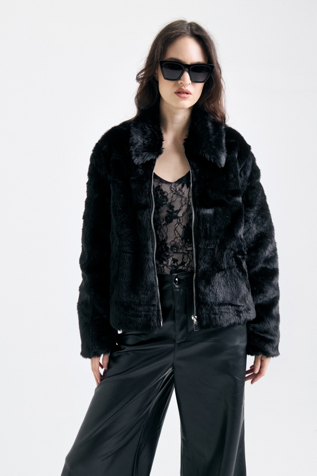 Campera confeccionada en piel, de calce recto y mangas largas. Acceso con cierre central metálico y detalle de cadena con identificación de marca. Forrada al tono. Composición: 100% Poliéster HECHO EN CHINA