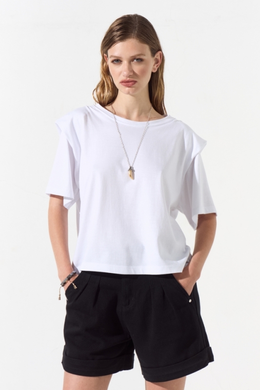 Campera de cuello solapa y manga larga acabada en puño. Bolsillos plaque en delantero. Cartera frontal con botones.