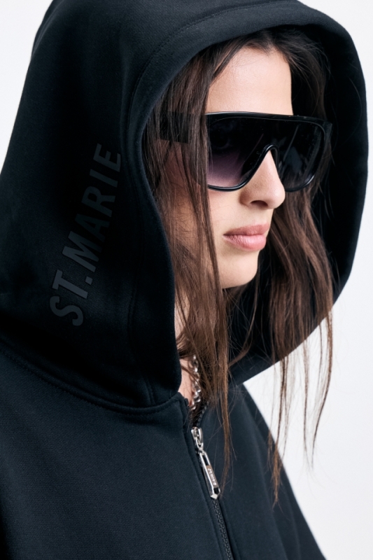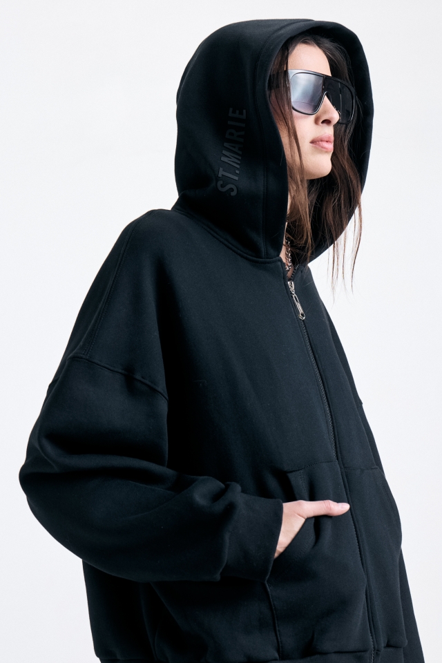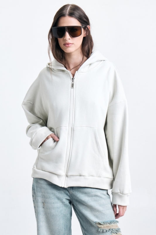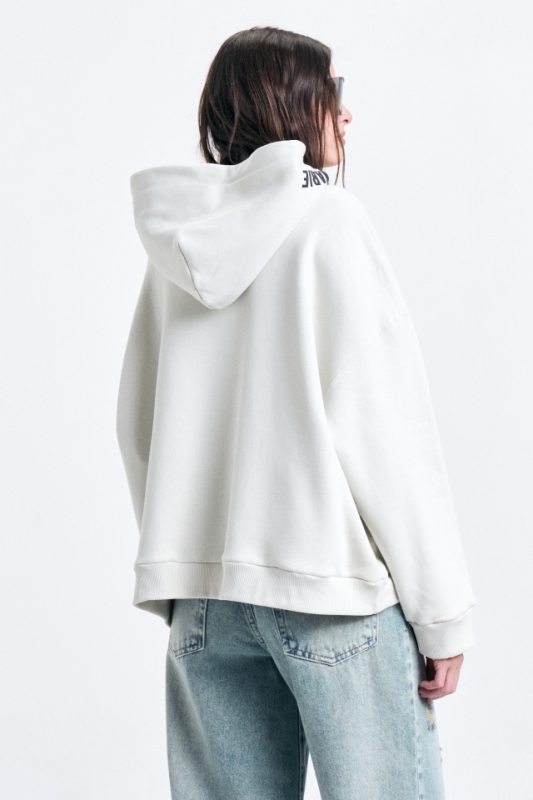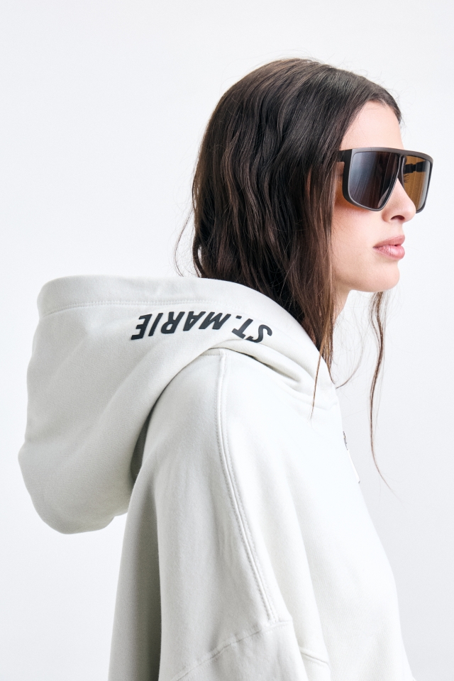 Campera calce oversize confeccionada en frisa de algodón. Lleva capucha con estampa institucional. Composición: 80% algodón 20% poliéster