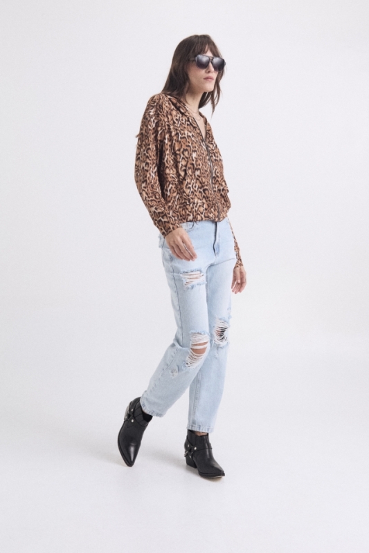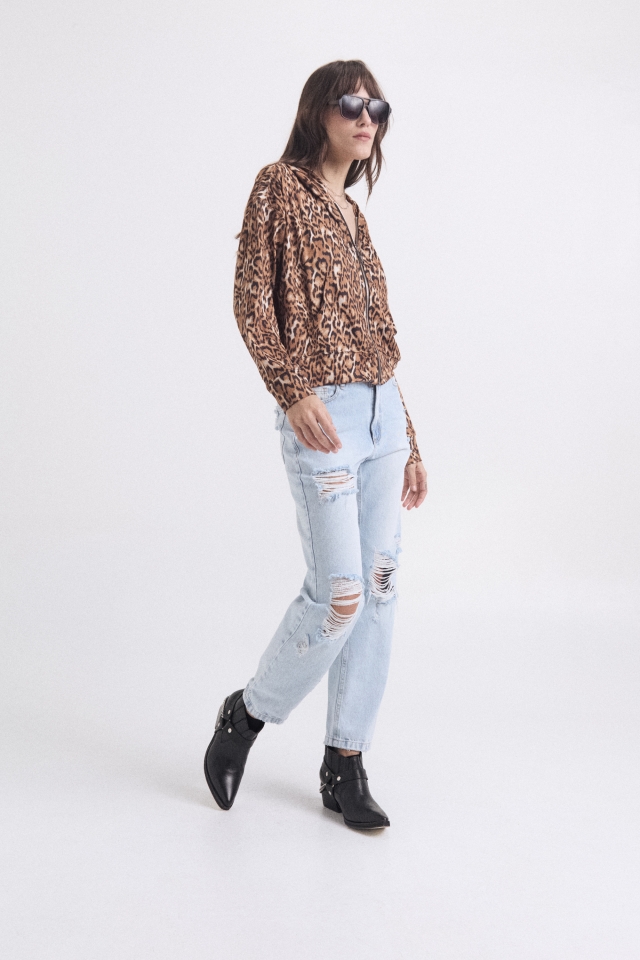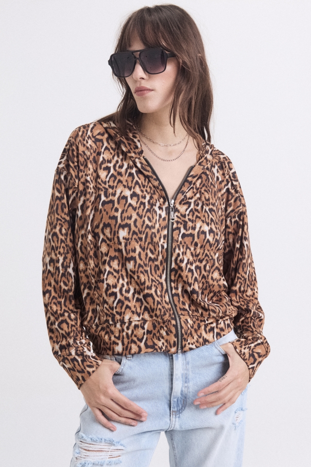 Campera tela Soft print con capucha y bolsillos delanteros tipo canguroComposición: 94% poli 6%