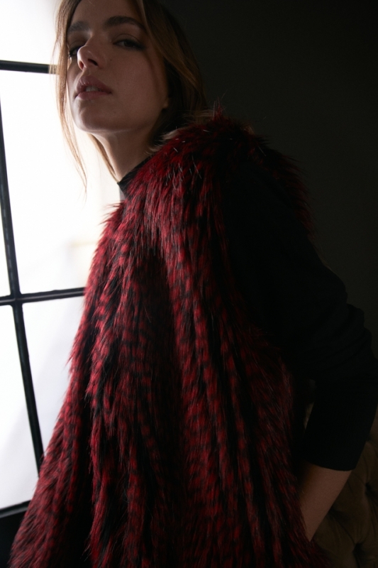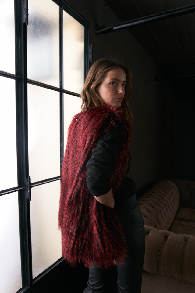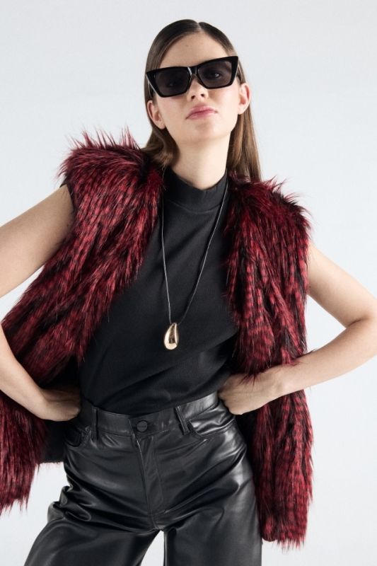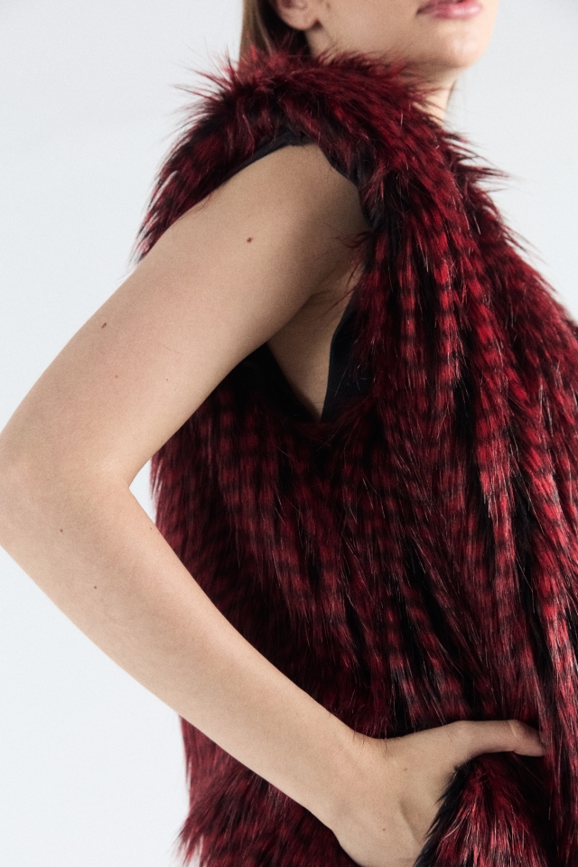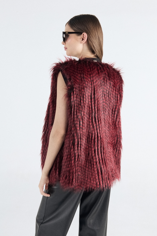 Chaleco de piel simil zorro Burgundy jaspeado negro