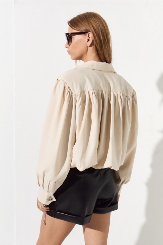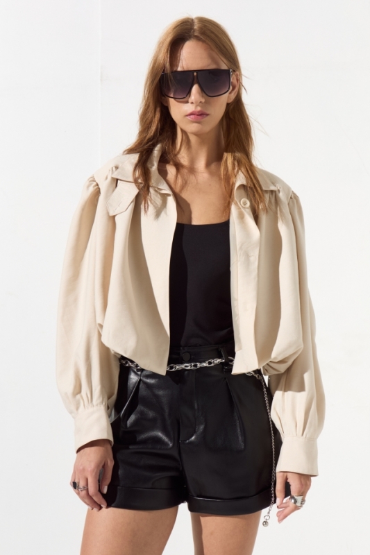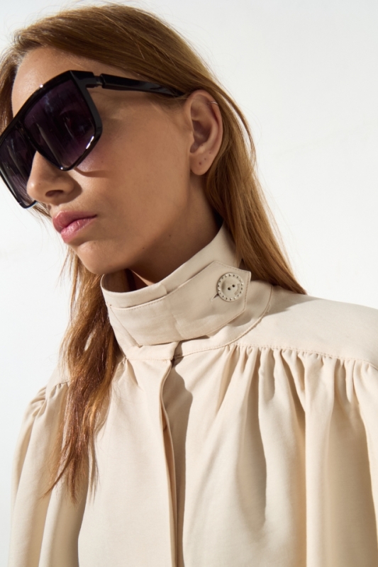 Chaqueta de twill, su delantero, espalda y copa de manga llevan frunces.Composición: 90% Rayon 10% Poliester
