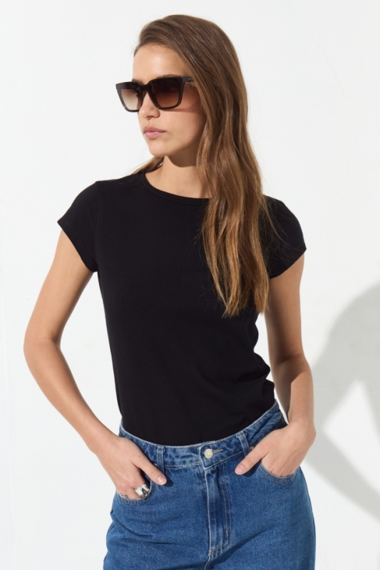 Chaqueta de textura reptil, cuenta con un cierre metálico en su delantero, lleva charreteras en los hombros, su calce es entallado, y además lleva un cierre decorativo en la parte superior del frente. En en interior de la prenda se le colocaron hombreras, y en su cintura trasera tiene hebillas que simulan regular un cinturón.