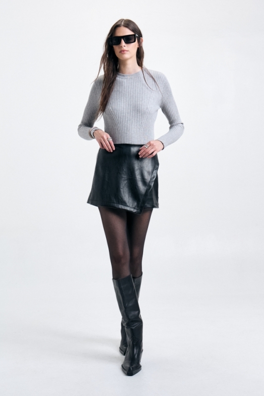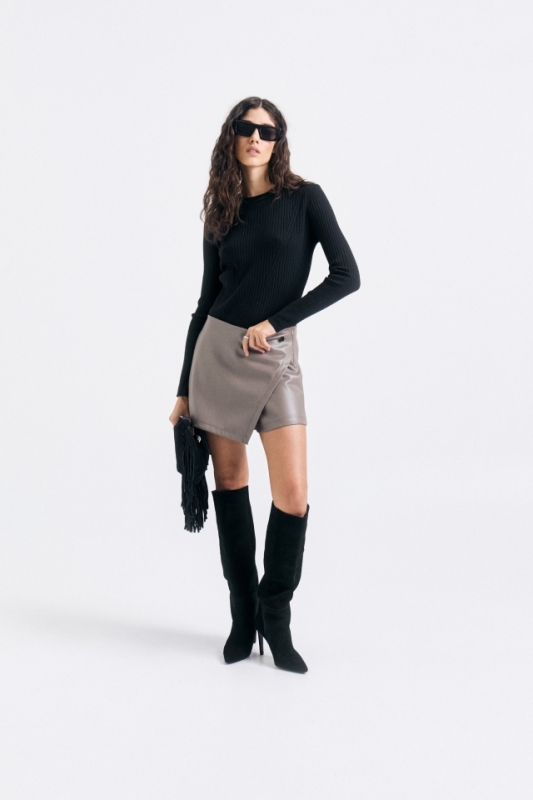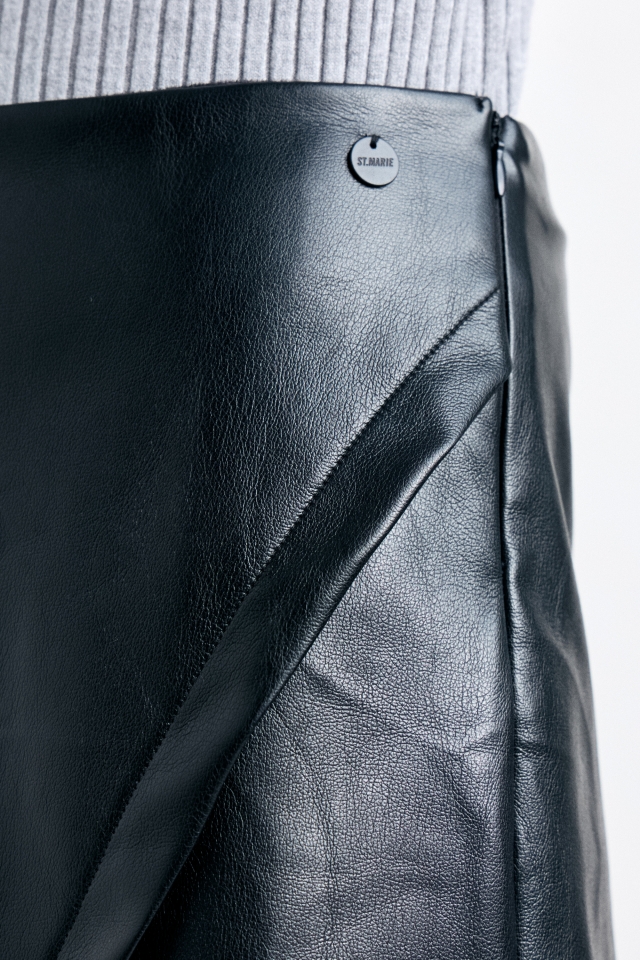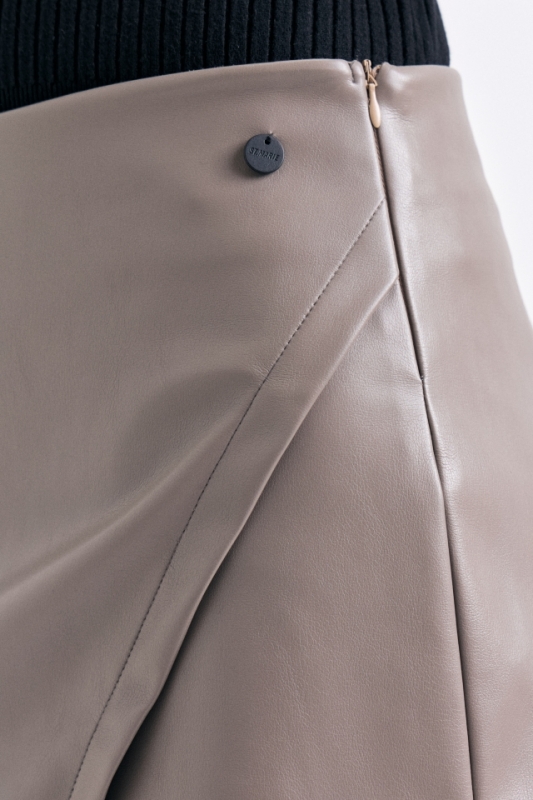 Falda de cuero portfolio con short interno. Cierre invisible para acceder a la prenda en lateral.Dije de marca en delantero.Composición: 100% PU