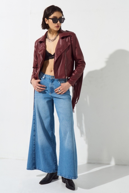 Largo al piso. Cinco bolsillos. Con recortes laterales
