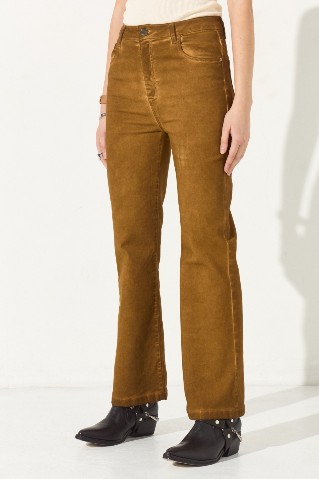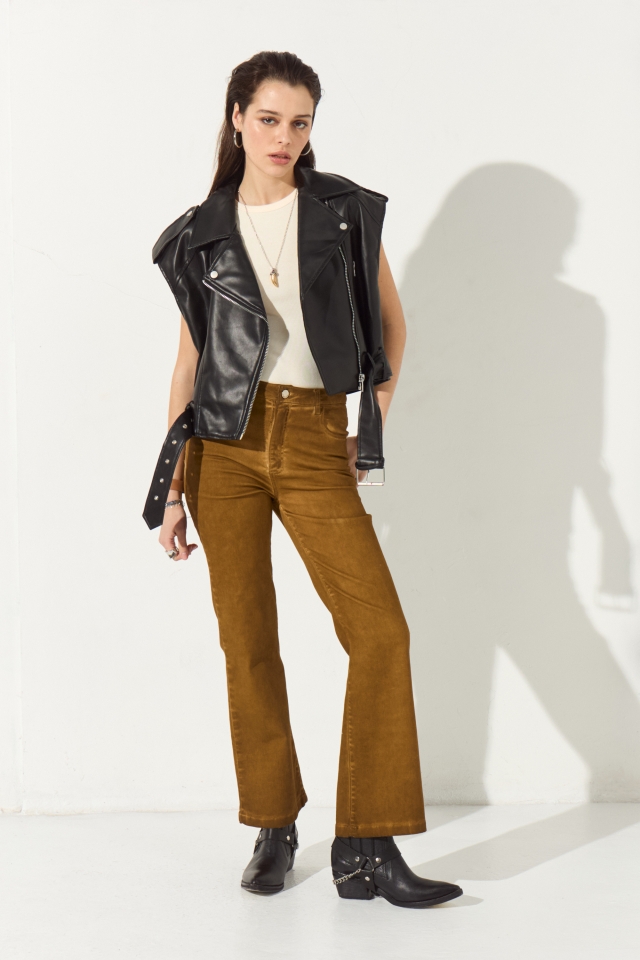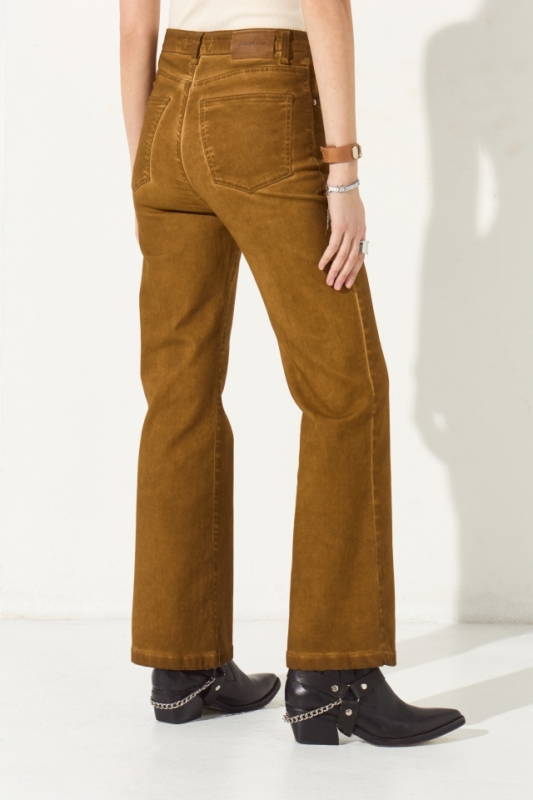 Jean calce bootcut tiro alto elastizado 5 bolsillos. Largo al tobillo. Composición: 98% algodon 2% elastano