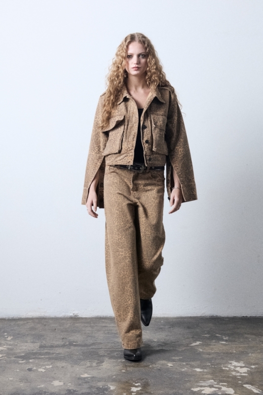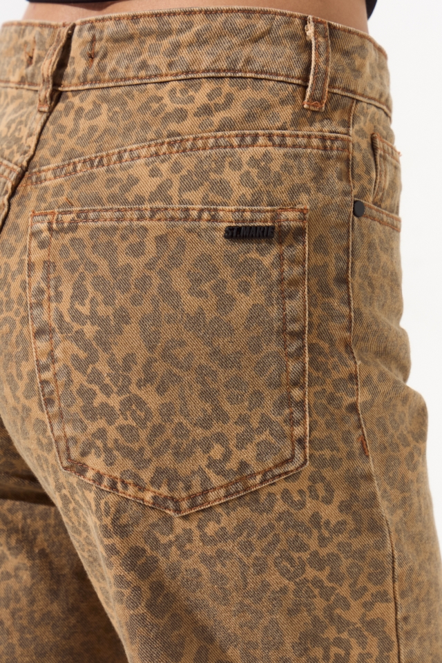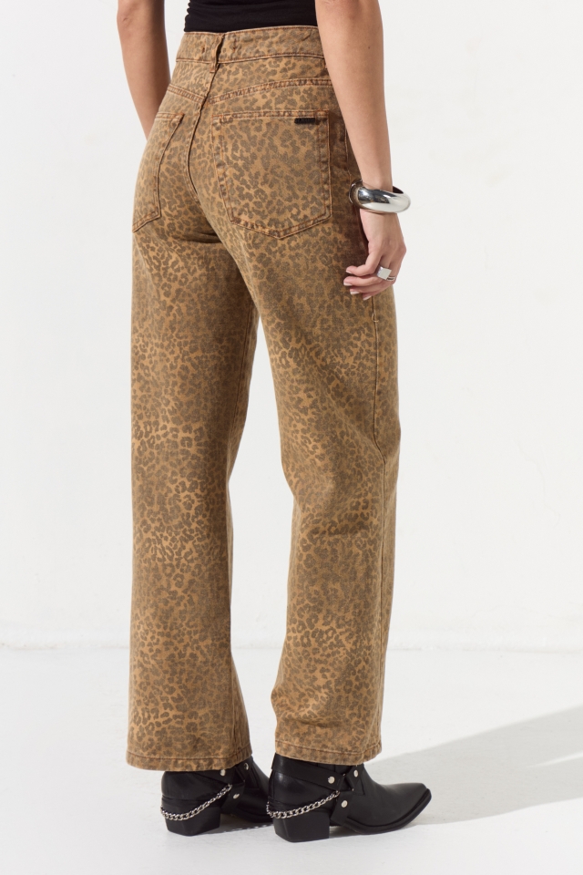 Jean recto tiro medio. Pierna holgada. 5 bolsillos. Full print
