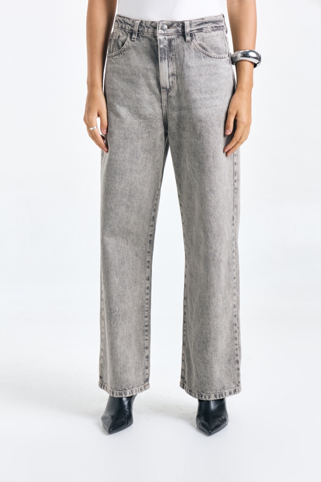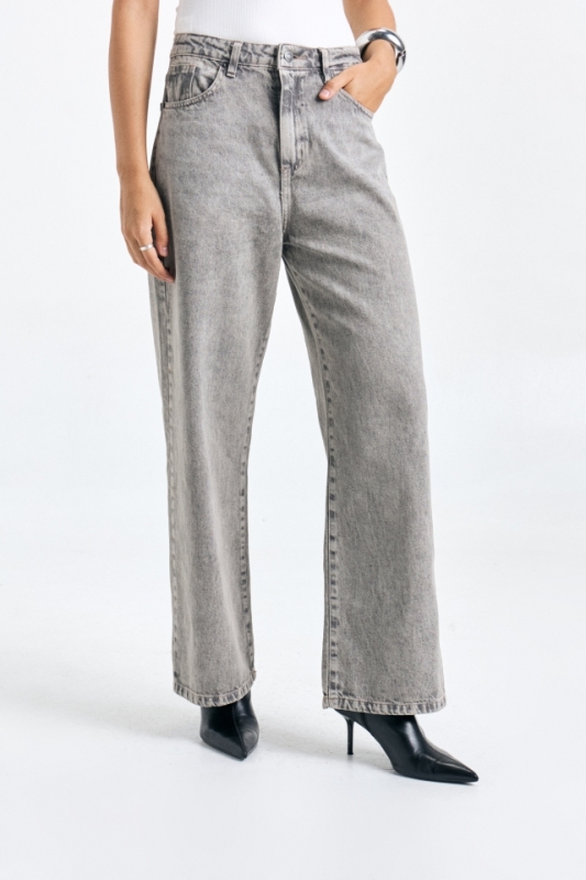 Jean recto, tiro medio , cinco bolsillos, posee un calce relajado.