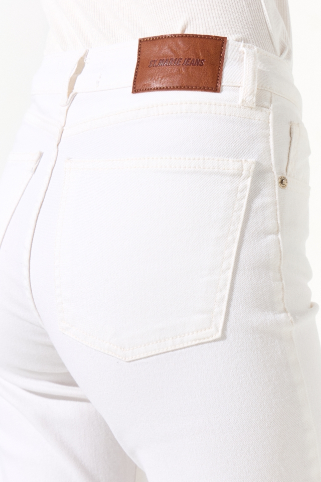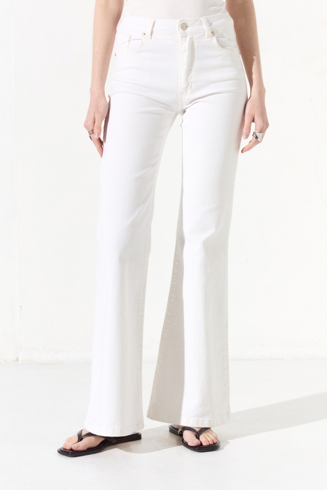Jean de tiro medio, posee cinco bolsillos su calce es oxford y lleva un ruedo ancho, su tela es elastizada, y a modo de detalle lleva una chapita con la identificación de marca. Composición: 98% Algodon 2% Spandex