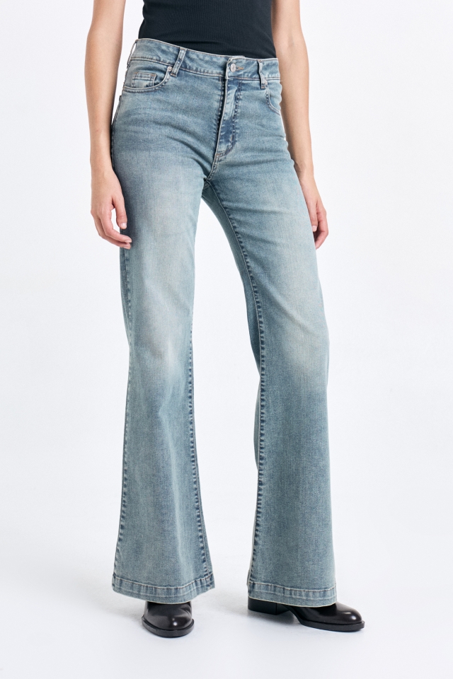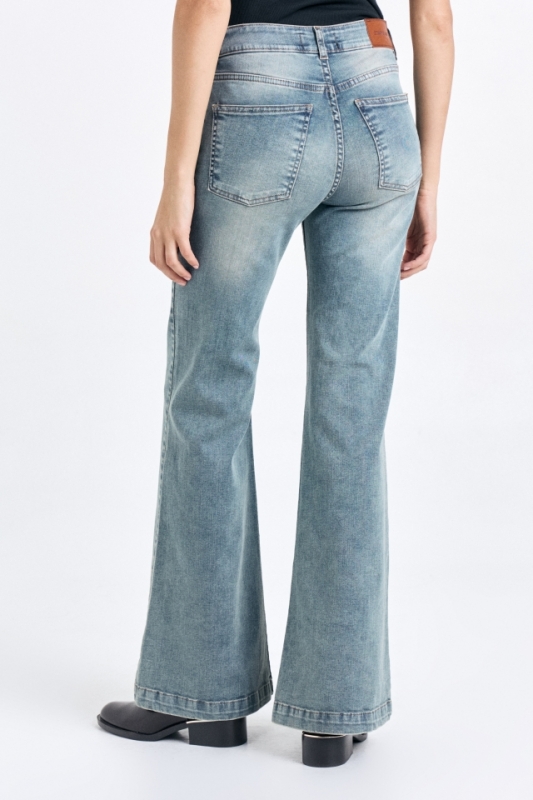 Jean oxford tiro medio, de cinco bolsillos elastizado. En la cintura trasera cuenta con una badana con identificación de marca. Composición: 98% Algodón 2% Elastano