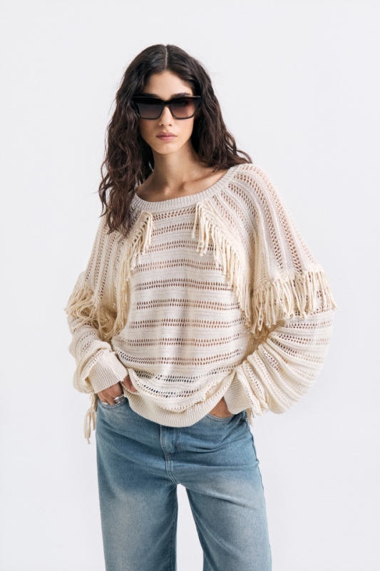 Jean cinco bolsillos tiro medio, con pierna ajustada que se va abriendo hacia la botamanga. Lavado celeste matizado.