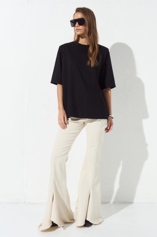 Jean wide leg con recortes en la pierna. Tiro alto 5 bolsillos. Ruedo comun