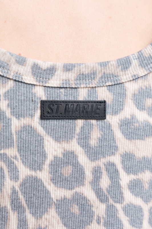 Musculosa escote U en morley pesado estampado en leopardo, con detalle de badana de marcaComposición: 60% Algodón 35% Poliéster 5% Spandex