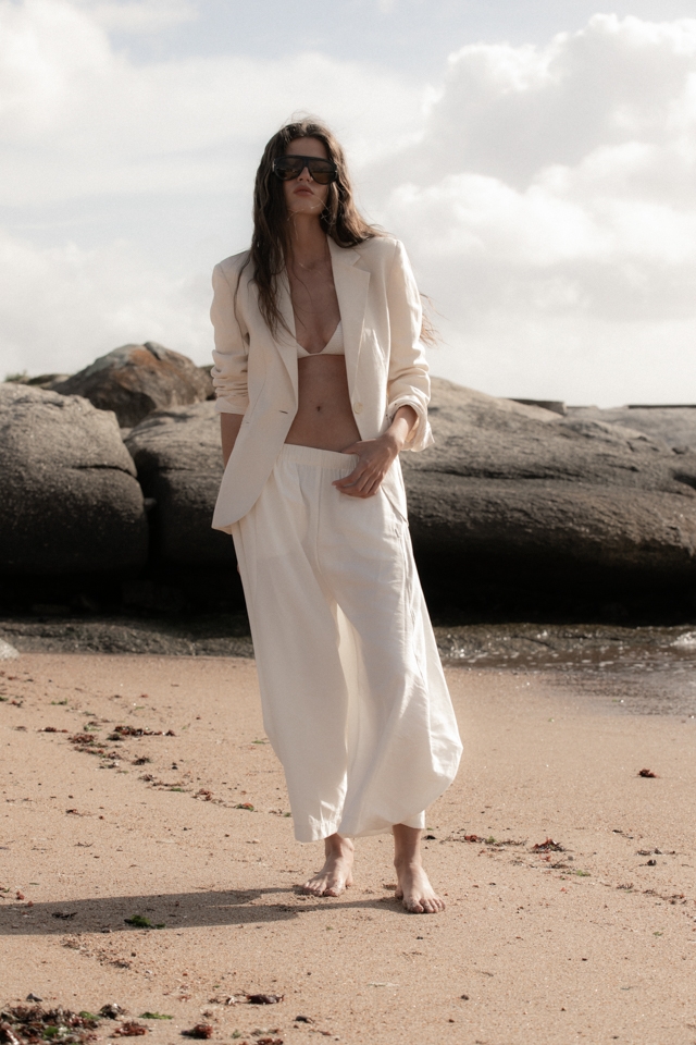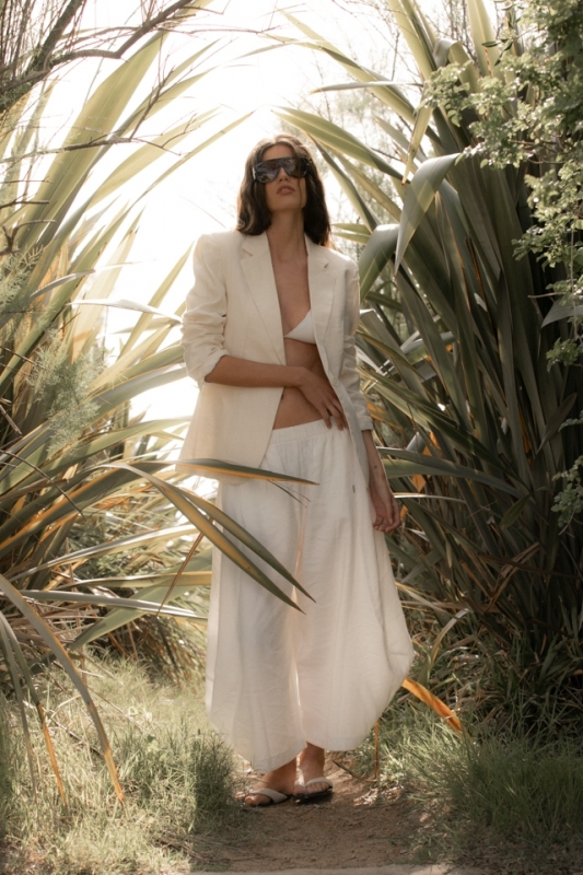 Pantalon de rayon, corte ballom, posee bolsillos en su delantero y en uno de ellos a modo de detalle cuenta con una chapita con identificación de marca.