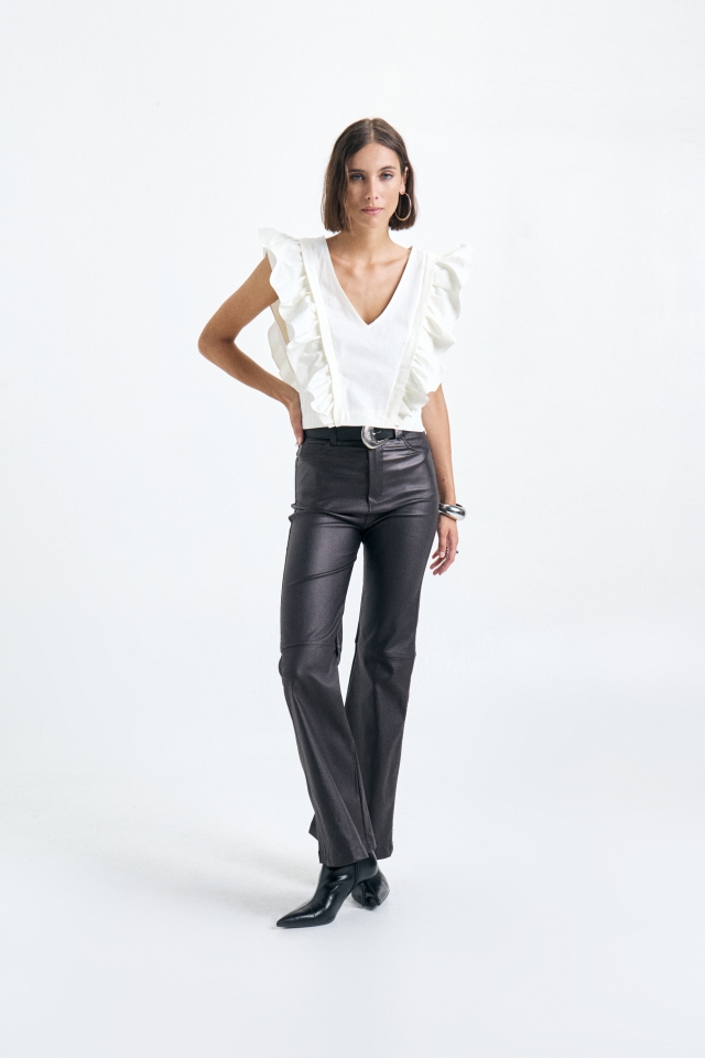 Pantalon confeccionado en lana con estampa exclusiva. Tiene pierna recta y tiro alto. Además cuenta con bolsillos lateralesComposición: 82% poliéster 14% rayón 4% spandex