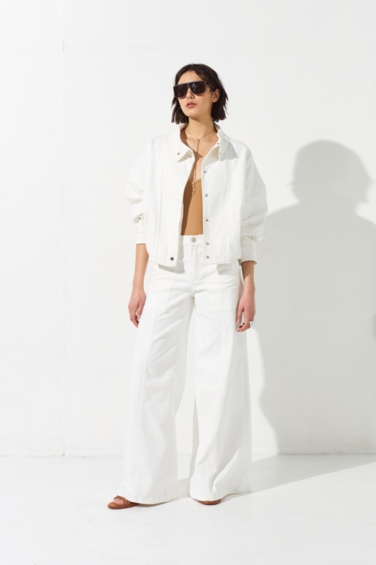 Pantalon pata ancha con recortes en delantero y bolsillos plaque