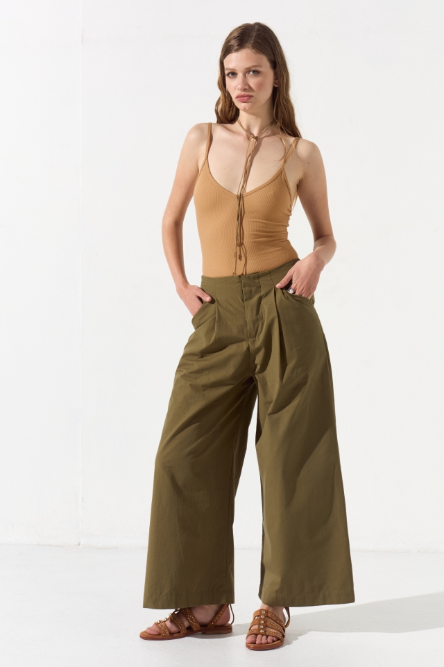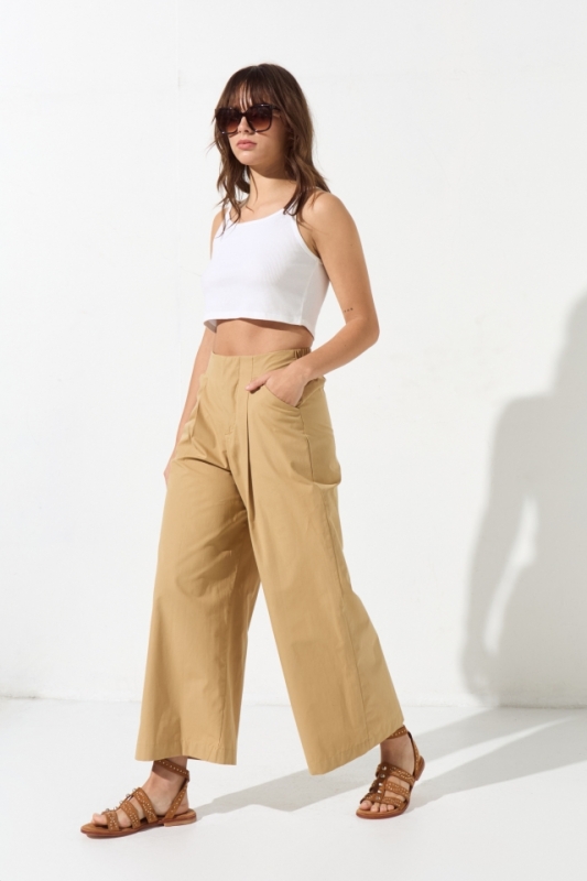 Pantalón sastrero, de pierna ancha con elástico en cintura espalda.