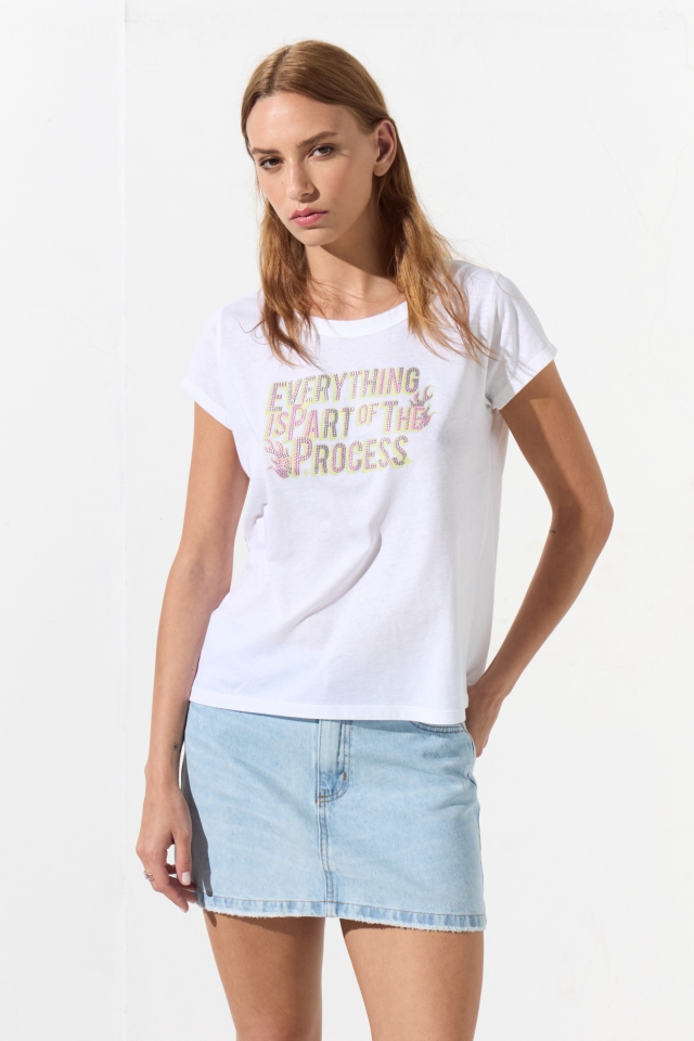Remera de jersey estampada con detalle de hotfix.Composición: 100% Algodón