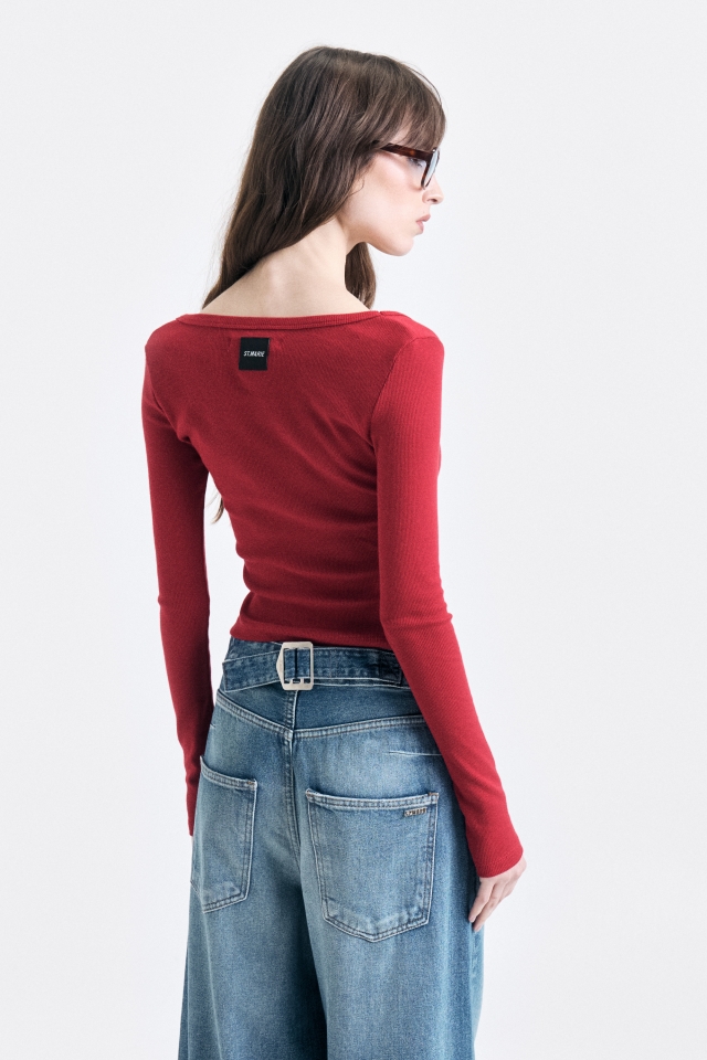 Remera de morley manga larga calce al cuerpo con escote en U.Composición: 98% Algodón 2% Lycra
