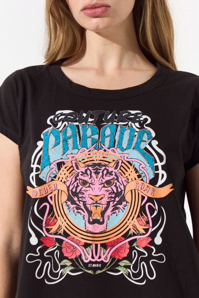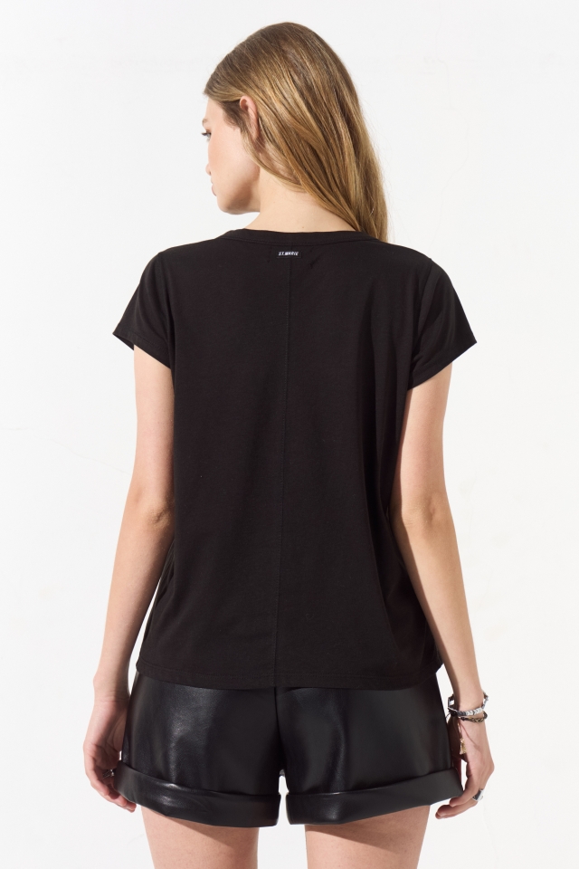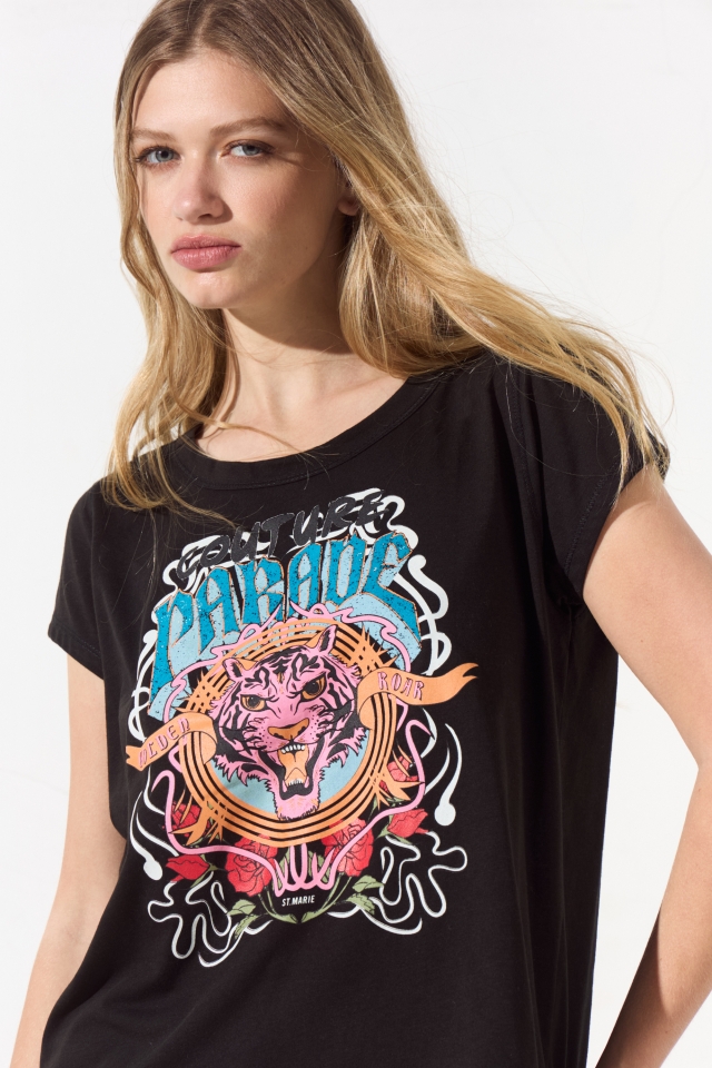 Remera de jersey, escote redondo clásico, con manga corta. En el centro de la espalda lleva una grifa con identificación de marca. El delantero lleva una estampa única. Composición: 100% Algodón