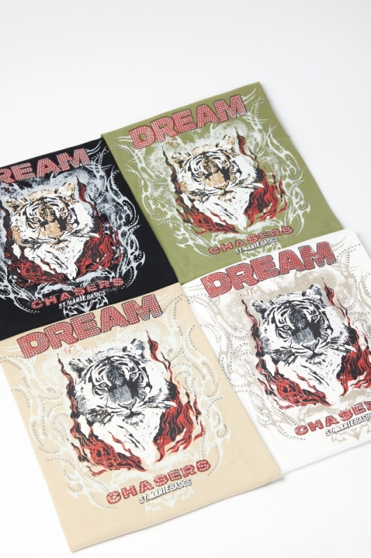 Remera de jersey estampada, combinada en su escote con un ribb a tono. En el centro de su espalda lleva una grifa con la identificación de marca