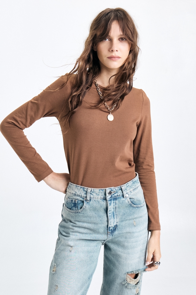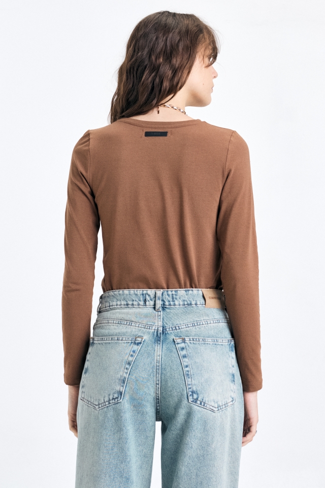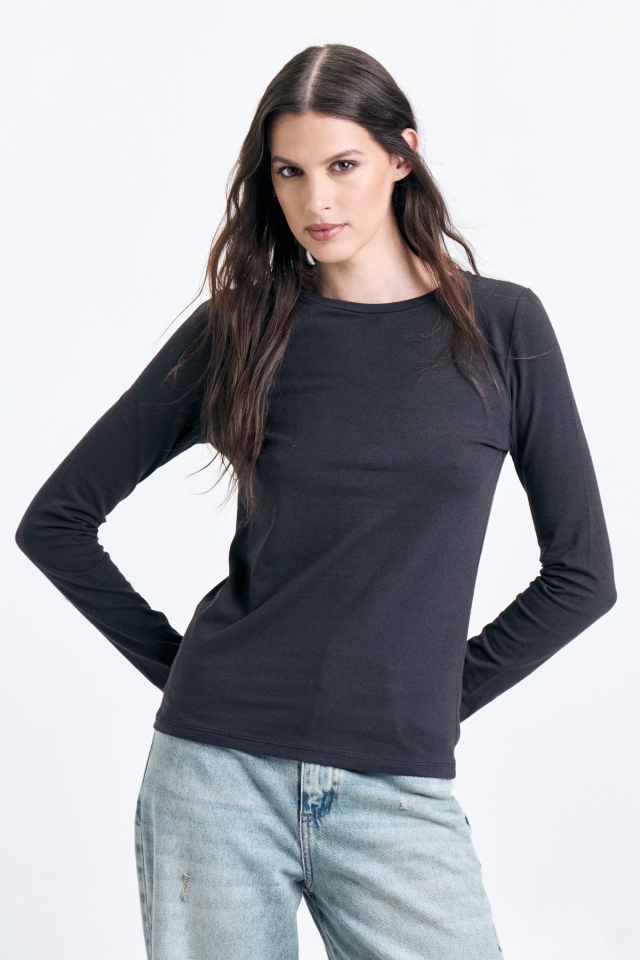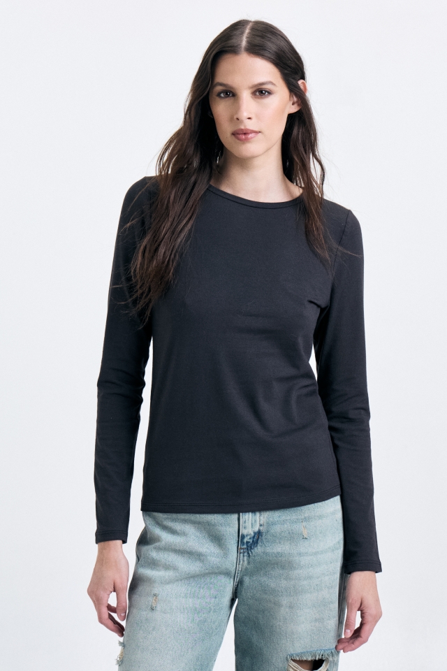 Remera manga larga, corte clásico, confeccionada en algodón con lycra. En la espalda superior lleva detalle de badana marcaria. Composición: 98% algodón 2% lycra