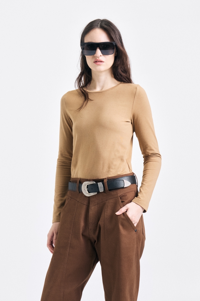 Remera manga larga, calce clásico y escote redondo, confeccionada en algodón con lycra. Composición: 98% algodón 2% lycra