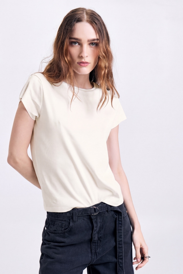 Remera de jersey algodón con lycra, escote redondo clásico. Calce al cuerpoComposición: 98% Algodón 2% Lycra