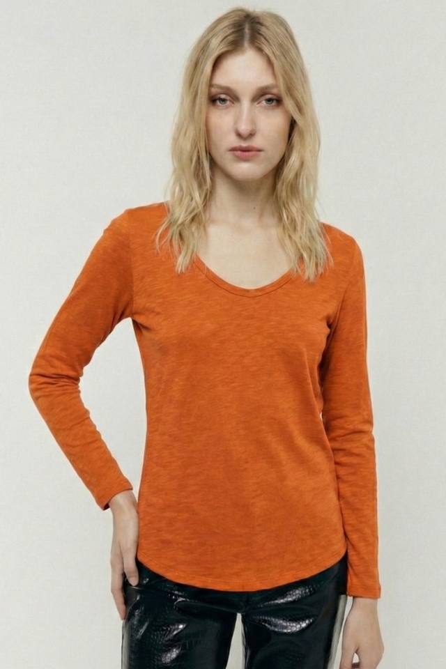 Remera basica escote en U, manga larga, estampa interna
