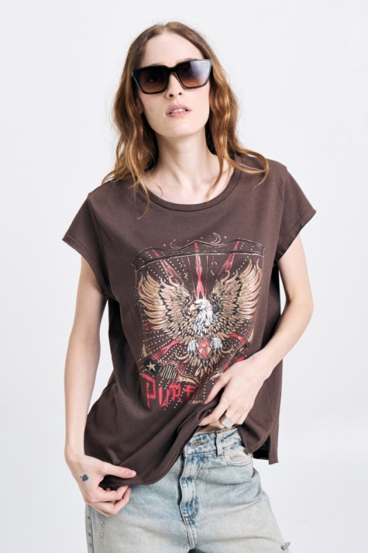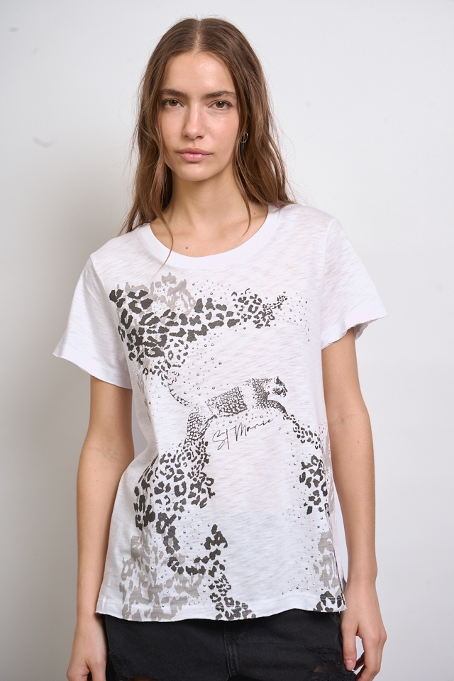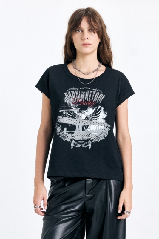 Remera de flame, escote y manga clásica, con estampa personalizada y detalle de hotfix.Composición: 100% Algodón