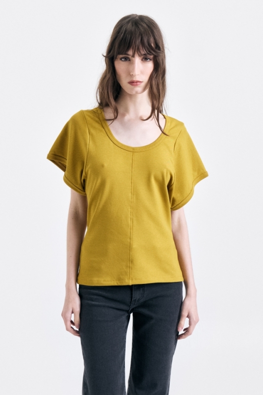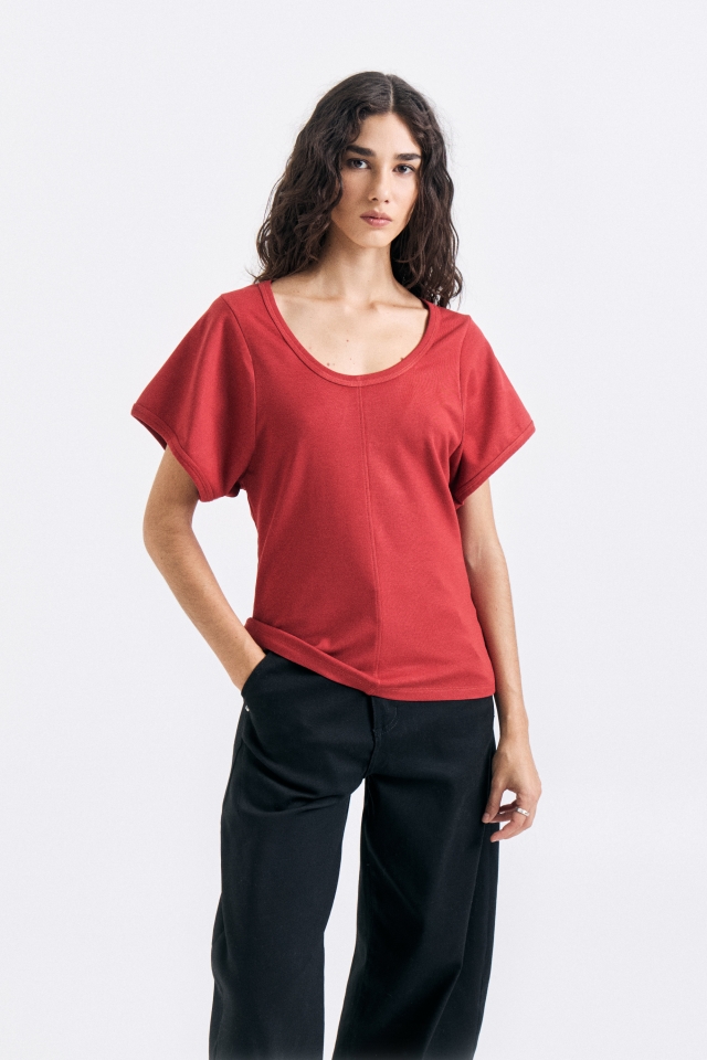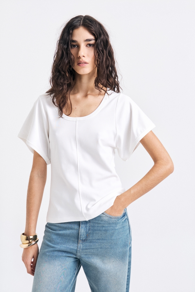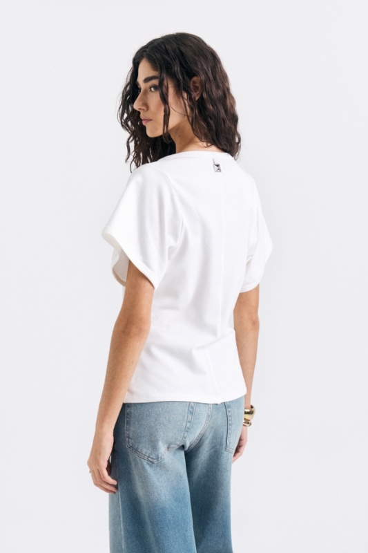 Remera de microsoft, con manga trapecio estructurada.Colgante con identificación de marca en centro espalda.Composición: 92% Rayón 8% Spandex