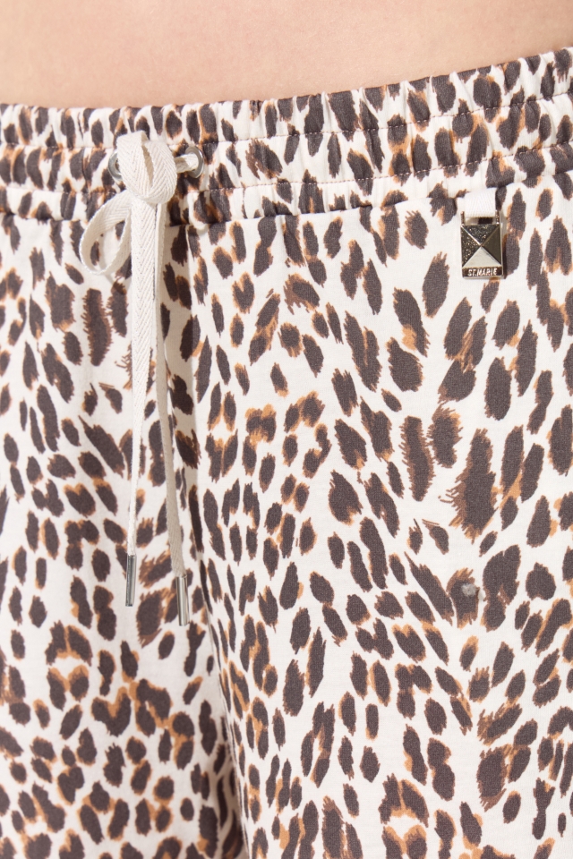 Short de flame estampado full print, con bolsillos y elástico en cintura, el mismo se complementa con una piola que tiene terminales de metal con la identificación de la marca. En el interior de los costados de la cintura lleva cinta bebe que permite colgar la prenda.