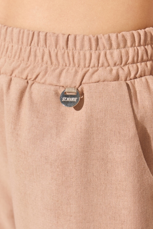 Short de lino rayon con elastico en cintura y chapita personalizada.