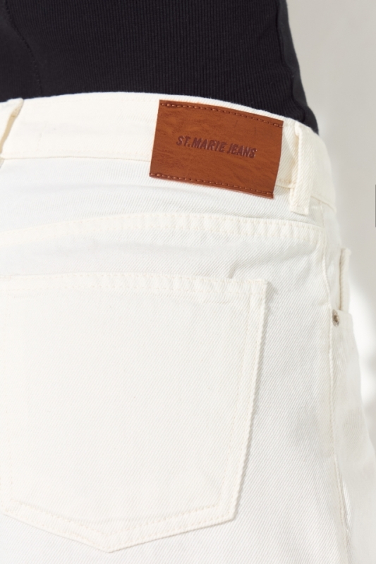 Short de jean 5 bolsillos rígido, sus bolsillos delanteros están atracados con snaps metálicos. En la cintura trasera lleva una badana de cuero en color camel con la identificación de marca.
