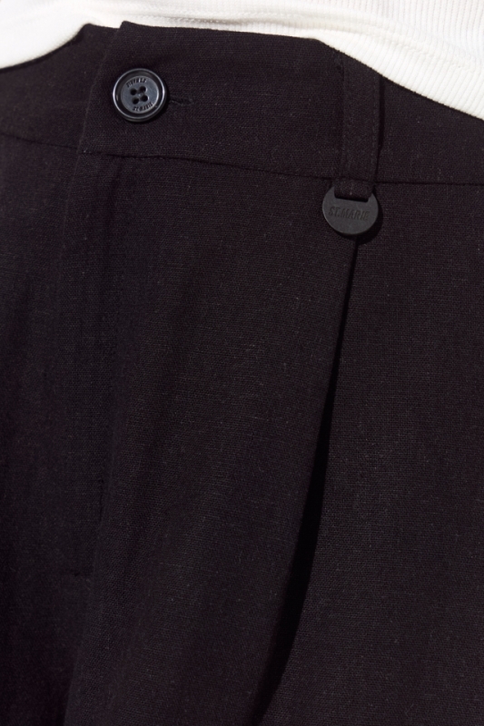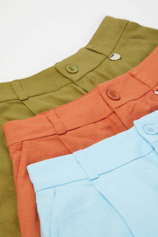 Short de lino con pinzas delanteras, corte sastrero, chapita personalizada