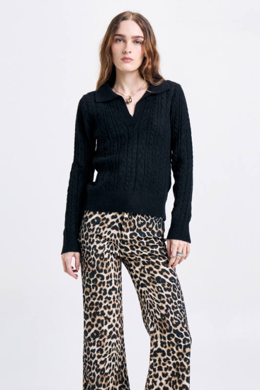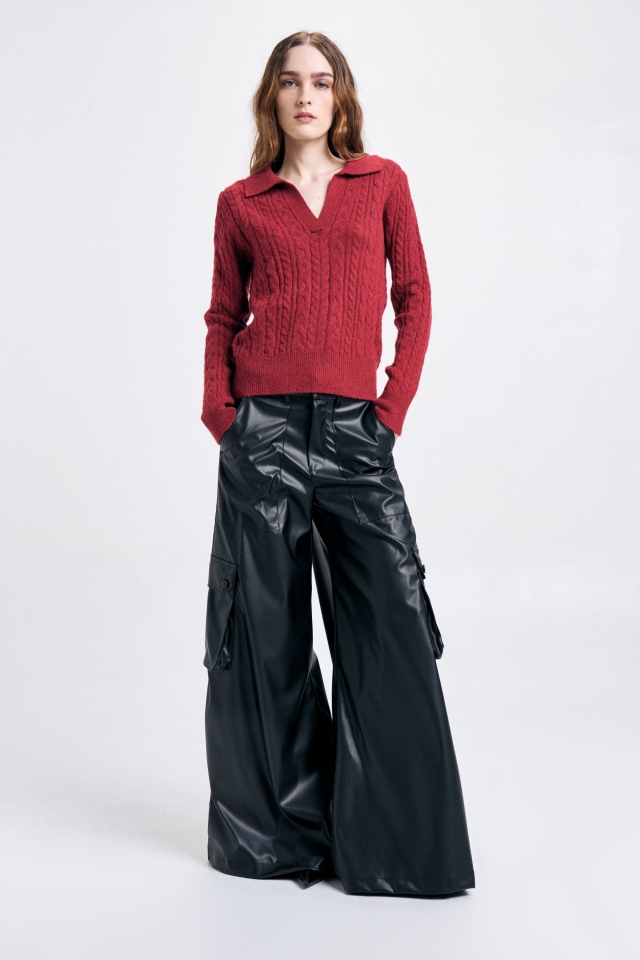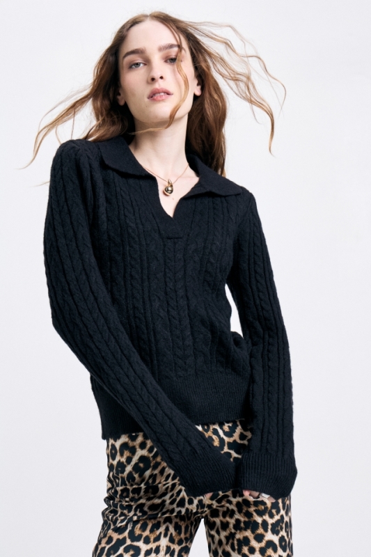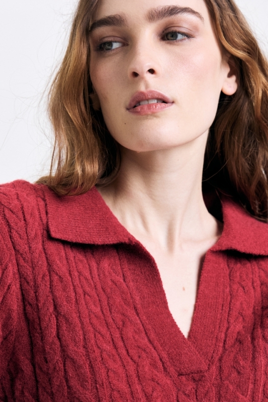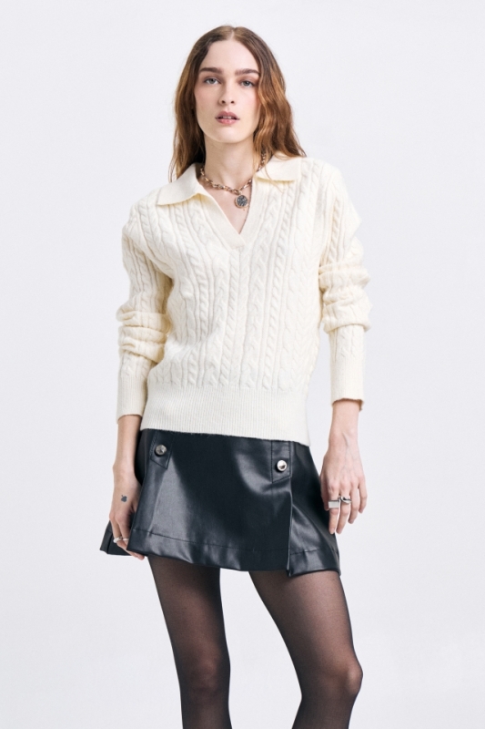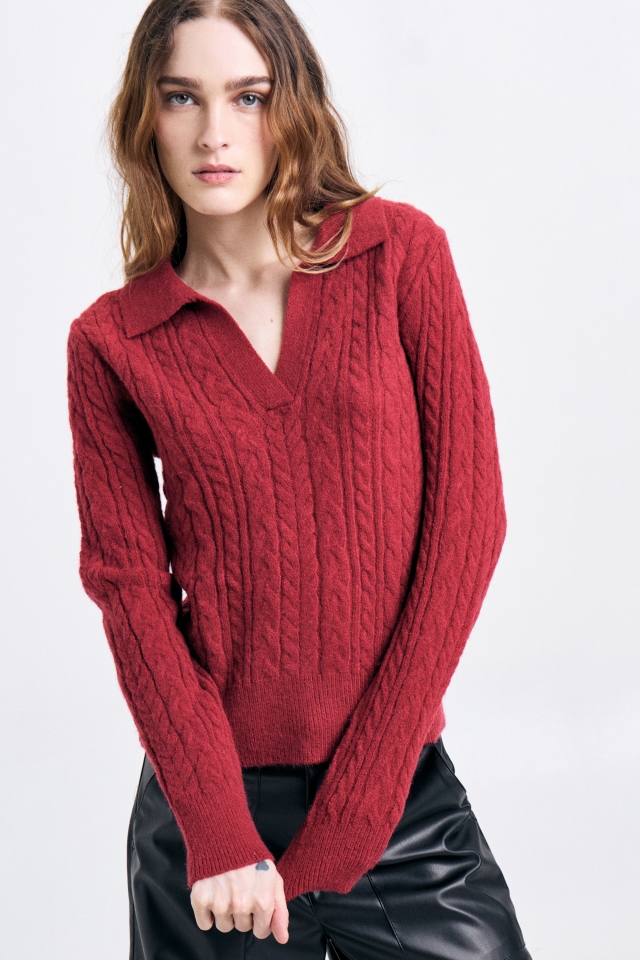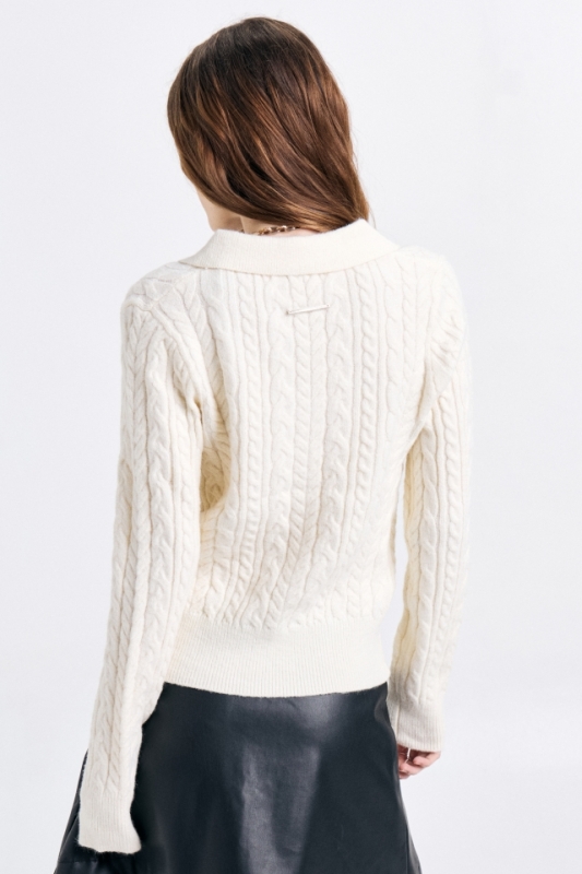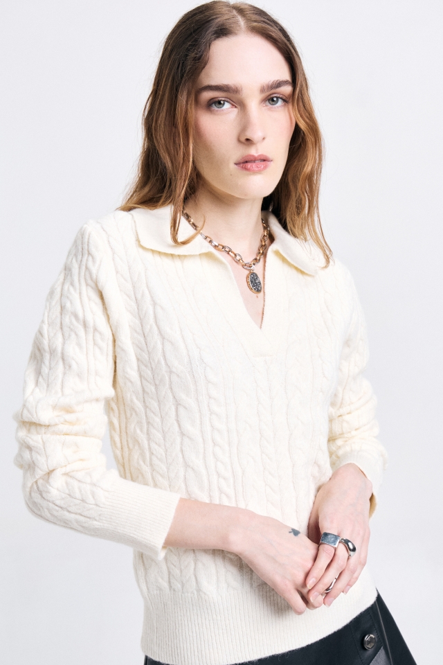 Sweater tejido de calce al cuerpo, con detalle de punto trenzado.