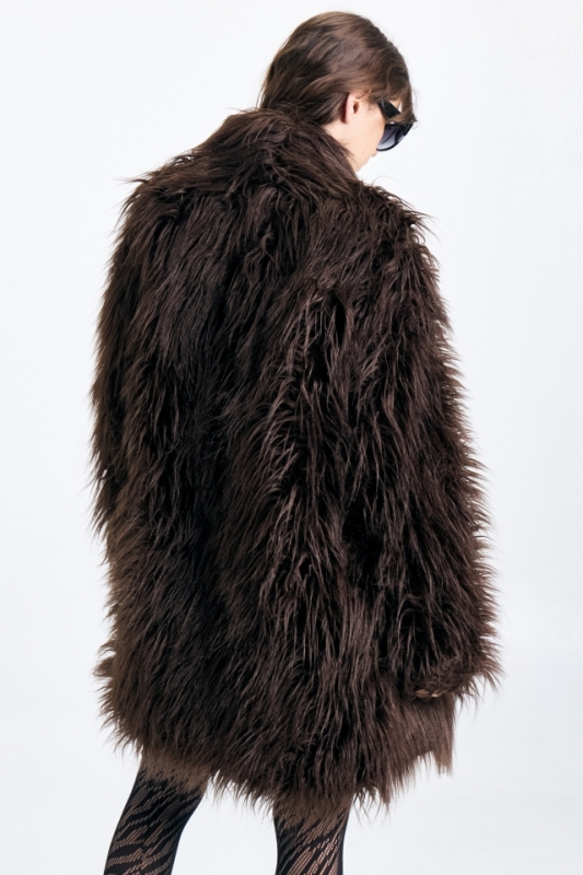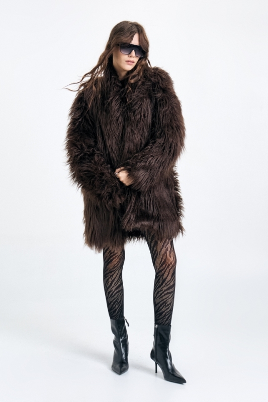 Tapado confeccionado en piel sintética , con forrería de satén. Cierre mediante ganchos peleteros. Composición: 100% poliéster