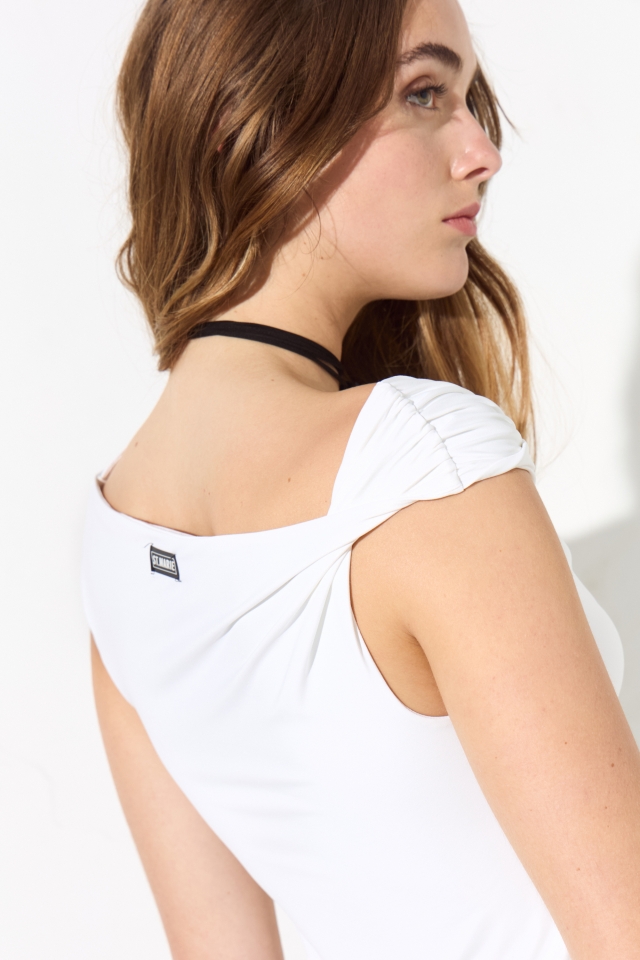 Top musculosa con escote volcado irregularComposición: 95% poli 5% Spx