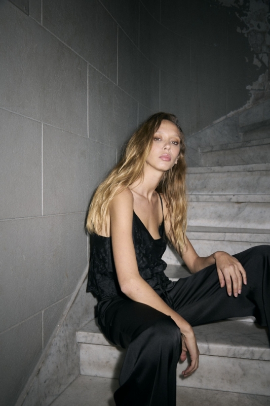 Top confeccionado en seda con guarda bordada en zona del ruedo. Tiene breteles regulables y chapita metálica con identificación de marca grabada.